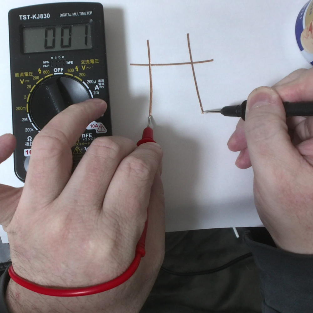 ハンダは火傷などの恐れがあるので、銅箔テープを2.54ピッチ以内の1.5mm幅で貼って使う電子回路用銅テープで安全に電子工作を行う。